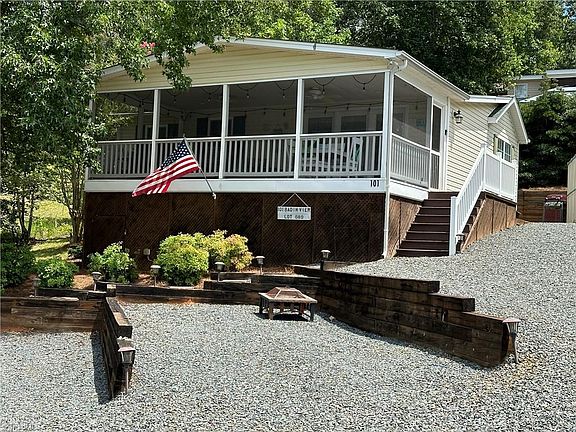 Come start living the Lake Life in this beautiful park model home with Room addition and screened front deck located in the gated lake front community of Badin Shores Resort. This home has 3 bedrooms and 1 bathroom on one end with a very large open kitchen, dining, and den area on the other end. Then step outside on the fully covered and screened deck and enjoy the weather and the view. This property also has a very large parking area for all your cars, trucks, boats, and golf carts along with a nice storage building. Don't let this one slip away. The resort has lake access, pool, marina, beach area, playground, restaurant, putt putt, basketball courts, and all paved roads.