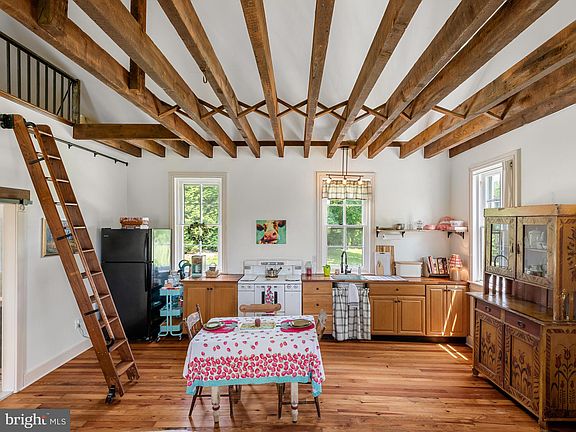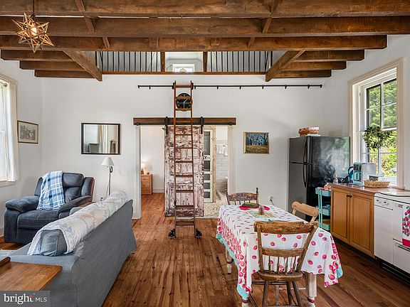 Welcome to 101 S Baker Road, a refurbished 1840s schoolhouse with all the charm you desire! Perched on over an acre level lot, this one-of-a-kind home has been restored with care to maintain its history and intrigue. The open-concept living area features beautiful hardwood floors and a gorgeous beamed ceiling. The kitchen, dining area, and living room are housed in this space, offering many possibilities for furniture placement. The bedroom boasts soaring ceilings and shares a space-saving barn door with the large bathroom featuring a stunning refurbished footed bathtub. Keeping with the era decor, a sliding library ladder offers access to the loft which provides a bonus area that can be used as a home office, yoga space, or simply for storage. Outside a section of the yard has been fenced in, perfect for both privacy and pets, and beautifully landscaped where you can spend evenings watching the sunset in this aesthetic setting. A unique opportunity like this does not come along often so do not let this one pass you by!