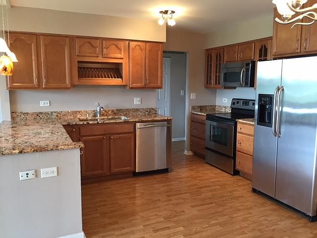 Spacious and bright 2 Bedroom / 2 Bath condo (on 5th floor) located close to shopping, expressways and transportation. Open kitchen with stainless steel appliances and granite counter tops. Bathrooms with ceramic tile. Large living room with exposed brick. Huge balcony overlooks beautiful pond and landscaping. Laundry room on the same floor. Underground heated garage space included. Pool, Clubhouse. Well maintained building. No smoking.