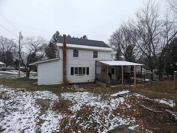 This charming home on a dead-end road features a wrap-around porch outside, along with a spacious level lawn space. The roof is newer. Inside, the large living room can be warmed by a cozy wood stove, making it the perfect place to curl up on chilly nights. Full bath upsairs, and a half bath laundry room on the first floor. With three bedrooms upstairs and the possibility of a first-floor bedroom, this property offers flexible living options. The boiler and electric hot water tank are newer as well. Some painting and updating could be done, but overall the property is in great shape and is ready to be moved into.