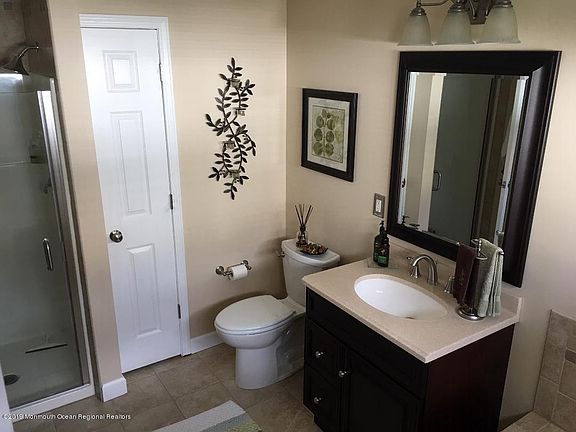 This split 3 bedroom ranch is meticulously maintained and gorgeous with many upgrades. Newer kitchen with granite countertops, under-cabinet lighting, and stainless appliances. Two full newer baths with soaking tub in Master bath suite. Newer garage door with additional side entry garage door and garage door opener. Wood floors and sliders in living room leading to lovely outdoor deck. Desirable corner lot in lovely Ocean Acres is landscaped beautifully to provide privacy and easily maintained with underground sprinklers on a well. Move in condition -