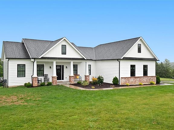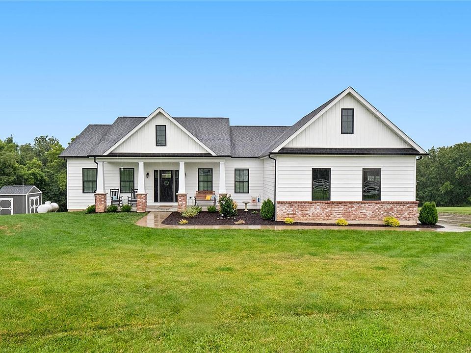 Welcome home to this gorgeous sprawling ranch on 5+ acres. Built in 2019! This 4 bed, 3.5 bath custom home boasts engineered hardwood flooring throughout most of the open concept floor plan. Off the foyer is an office that can be changed back to a formal dining room if desired. The spacious living room with vaulted ceiling, gas fireplace, and large windows framing your secluded back yard is sure to be the main gathering space in this home. Adjacent is the bright and airy kitchen with quartz countertops, subway tile backsplash, gas cooktop, stainless steel appliances and a farmhouse sink. Down the hall is the primary bedroom with ensuite including a claw foot tub, separate shower, and double sinks. Heading downstairs to the finished walk out basement you'll find the 4th bedroom and an enormous rec / living area. 9' ceilings on both floors are a must have! Other features include a 3 car garage, storage shed, invisible pet fence and wood deck off of the kitchen / breakfast area. Additional Rooms: Mud Room
