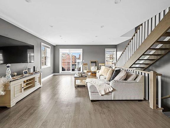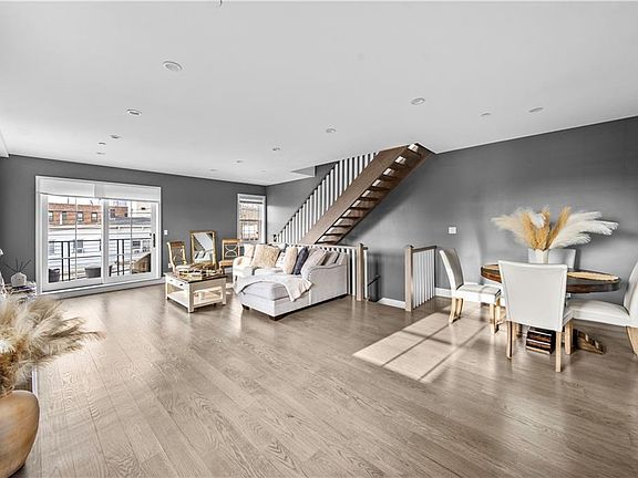 Take advantage of owning this rarely available move-in ready modern luxurious duplex penthouse with your very own private rooftop featuring soaring unobstructed views of the Verrazano Bridge as well as your very own deeded parking space. Located in the heart of Bay Ridge this newly constructed building dates back to 2020 displaying attention to the finest detail with absolutely no expense spared with its high-end modern finishes and appliances. Located on the 3rd floor of this beautiful building offers a 3 bedroom 2 bathroom duplex spanning 1550 square feet of modern luxury offering an open layout and a very rare 1250 square foot PRIVATE rooftop. Enter into the expansive open concept and enjoy the abundance of natural sunlight pouring in throughout the entire apartment. The living room is open and spacious alongside a formal dining area as well as your own chef's kitchen featuring Bosch appliances as well as a dazzling quartz island with plenty of seating which is great for accommodating guests. The living room boasts unobstructed views of the Verrazano Bridge and features a private terrace also with unobstructed views that conveniently offers a perfect blend of indoor/outdoor living all year round. Grey oak floors leads through the exotic Venetian plastered hallways to the luxurious primary suite with its own private balcony. The suite is a true oasis featuring an abundance of closet space as well as a spa-like en-suite with floor-to-ceiling marble and a walk-in glass-enclosed rain shower. Additionally, there are two more spacious queen-sized bedrooms on this level both offering ample closet space. From the hallway, there is the second generous floor-to-ceiling marble modern bathroom with a clawfoot tub. Additionally, there is an in-unit Washer/Dryer and the entire unit comes equipped with central air/heat. This unit also comes with a private and secured storage room located in the basement.