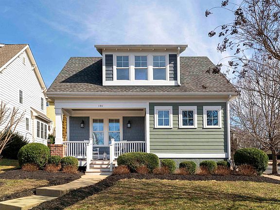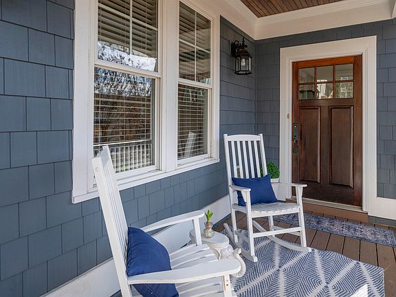 OPEN HOUSE 3/1 11:30-1:30! This bright and cheerful Arts & Crafts-style home offers effortless one-level living with a spacious 1.5-story design in the HOA-free, peaceful city enclave of Carter's View. While convenient to Uva, downtown, IX, and 5th St Station, Carter's View is tucked back from main roads and enjoys elevated, unobstructed mountain views + direct Moore's Creek & Rivanna Trail access. The design of this home was influenced by Nantucket vacation homes with colorful shake & siding, abundant windows, high ceilings, open-living, custom built-ins, and multiple outdoor living spaces including an outdoor bar made of 100+ year old wood. The thoughtful design also accounts for storage needs from the oversized one-car garage to easily accessed eave storage, large pantry, expansive mud room, and walk-in closets in each room. Extraordinarily energy-efficient due to blown-in insulation, tankless hot water heater, insulated duct work, and higher-end double hung windows. Recent upgrades include 2017 kitchen renovation, fresh interior (2025) & exterior paint (2020), new light fixtures (2025), extended patio & added outdoor bar (2018), refinished floors (2018) & carpet (2025), and refreshed landscaping (2025).