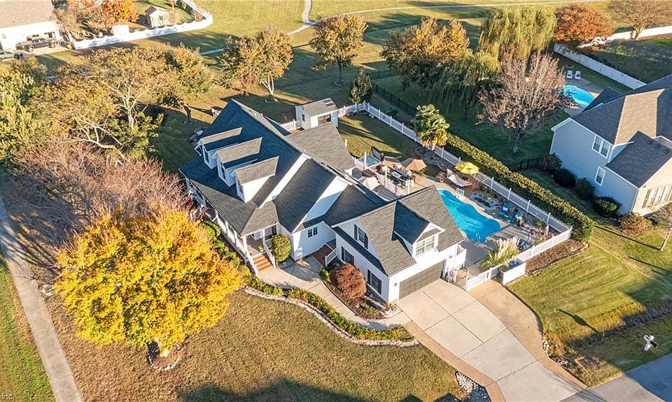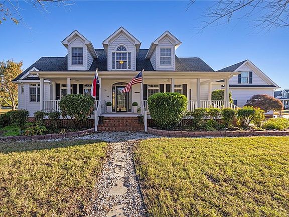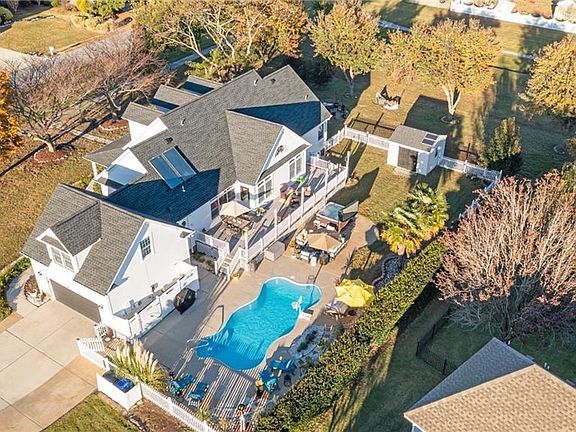 Timeless charm and refined elegance define this 4 bedroom 4.5 bath home at Riversedge. A sunlit open floor plan features vaulted ceilings and transom windows. The first-floor owners suite offers a modern bath and custom walk-in closet. Enjoy a private deck, salt water pool, firepit, and hot tub oasis. Recent upgrades include dual HVACs, full sand filtration for saltwater pool, new pool pump, fresh paint, garage shelving, roof, and gutters. Enjoy the community amenities; boat launch, exercise and jogging path, Pickleball and Tennis courts & more.