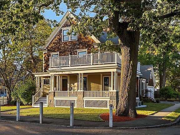 Beautifully maintained Philadelphia-style 2-family in prime Wollaston location! This versatile expansive home is perfect for multi-generational living or rental income. Pride of ownership is evident throughout with lots of updates, charming features and great curb appeal. An expansive farmers porch surrounds the 1st floor unit with living room, dining room, kitchen, 2 good size bedrooms, full bath, in unit laundry and great storage. Hardwood floors throughout the 3 levels. Both units have gas fireplaces. 2nd unit is a spacious duplex style with open plan living/dining room, kitchen with pantry, office, half bath, a primary suite, and wraparound Trex deck. Top floor has 3 ample size bright bedrooms, full bath, and laundry room. Finished walk-out basement has many options for your needs, great space with 3 rooms, full bath and radiant heat. All new windows 2024. Corner lot with fenced yard, sprinklers, and oversized 2-car garage. Minute's walk to beach, stores, restaurants and the "T".
