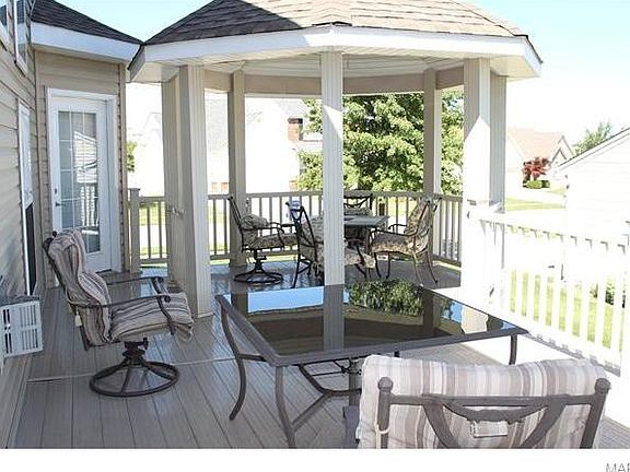 Immaculate 1.5 story in the growing Wentzville community! Open entry greets you with the elegant dining room, & leads to a two-story great room with it's gas fireplace & wall of windows. Luxury kitchen with large center island, beautiful granite counters, backsplash, 42" cabinets, gas stove/dual fuel electric oven, & spacious breakfast room with sliding door leading to the maintenance free deck. Deck boasts a gazebo with fan for a perfect reading spot. Large master suite features his & her closets,a bay window & patio door to the deck. Upstairs find a second master suite, two spacious bedrooms, a hall bath, & a large bonus room. Crown molding, arched doorways, central vac, fresh paint, & new carpet are just a few features this beautiful home has to offer. Extra Storage in the over-sized garage. Close to shopping, major interstates, schools, & the new Wentzville Bluffs with it's fitness center, movie theater, restaurants, & a short drive to Katy Trail State Park & Missouri Wine Country.