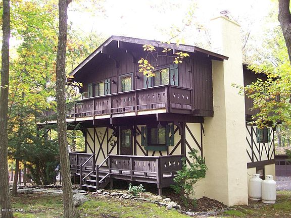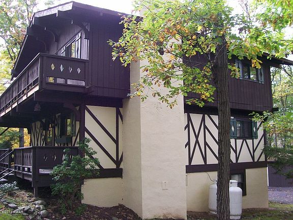 WOW! WHAT A DEAL! Renovated 5 bedroom, 3 bath chalet. Vaulted ceilings, lots of light, open kitchen, dining area and living room with wood burning fireplace. Family room, game room, greenhouse and garage/shed. Circular paved drive, lots of decking and a covered screened porch. Seasonal view of golf course and lake rights to motorboating Lake Wallenpaupack. Four seasons of fun! Low taxes! NE PA, only 2 hours from major metro areas., Beds Description: 1 BED 2nd, Beds Description: 2+Bed1st, Beds Description: 1BedLL, Beds Description: 1 BED 2nd, Baths: 1 Bath Level 2, Baths: 2 Bath Lev 1, Baths: Modern, Eating Area: Ultra Modern KT