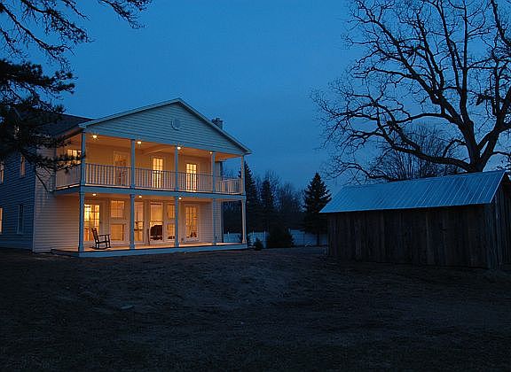 Remodeled farmhouse with modern finishes that incorporate traditional touches such as hand hewn beams, homestead doors, and original wood floors.