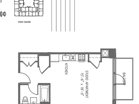 Residence A-302 is a Large Studio Apartment with Private Balcony!! with a sunny south and eastern exposure This unit features floor-to-ceiling windows, wide plank 4" white oak hardwood floors, Caesarstone natural quartz counter tops, top-of-the-line stainless steel appliances, and surround sound Bose speakers! We have designed the space to give you a sense of spaciousness inside and out, with open lobby and large windows throughout that invite natural light. Apartments features: * oversize rooms with floor-to-ceiling windows throughout, *wide plank 4" white oak hardwood floors, *Cesar-stone natural quartz counter tops, *top-of-the-line stainless steel kitchen, *pre-wired phone data lines and surround sound speakers hardwired to your personal IPod/Music Dock. Awesome amenities include; *an indoor swimming pool and hot tub (lit by skylights), *state-of-the-art fitness center, * full-service spa featuring steam, sauna, and treatment rooms, *a fully-furnished landscaped roof terrace with barbecue station and panoramic views of the Manhattan skyline and McCarren Park, *a 15,000-square-foot courtyard. * Club Lounge, *Conference and Business Center, *Library with fireplace, *Game room with Golf Simulator, *Wine Cellar, *29-seat Screening Room, *Bike Room *Pet Spa. *Kids Room Conveniently located along Bedford Avenue in North Williamsburg and a quick walk from the Bedford Avenue L subway, only 1 stop to Manhattan! Take advantage of some of the area's top restaurants, hip bars, shopping, grocers and cleaners right outside your front door!