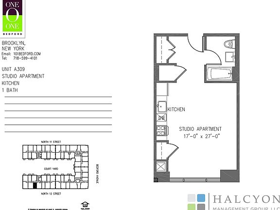 Residence A-309 is a Spacious Studio Apartment facing McCarren Park This unit features floor-to-ceiling windows, wide plank 4" white oak hardwood floors, Caesarstone natural quartz counter tops, top-of-the-line stainless steel appliances, and surround sound Bose speakers! 101 Bed ford is a full-service luxury rental building featuring unparalleled views of the Manhattan skyline and situated directly across the street from Mc Carren Park. Take a deep breath of relaxation the moment you walk in the front door as 101 Bed ford was designed to give residents a sense of spaciousness inside and out, with an open double height lobby and large windows inviting natural light. Conveniently located along Bed ford Avenue in North Williams burg. * Only 5 minute walk to the Bed ford Avenue L train & a 7 minute walk to the Nassau Avenue G train! * Take advantage of some of the area's top restaurants, hip bars, shopping, grocers and cleaners right outside your front door. Best of all, 101 Bed ford is across the street from Mc Car ren Park with 35 acres of bustling activity including the McCarren Park Pool and Play Center, 8 tennis courts, and facilities dedicated to soccer, baseball, basketball, bocce, football, kickball. 101 Bed ford has of the most exquisite and comprehensive amenity packages ever built! - Indoor Swimming Pool and Hot Tub (lit by skylights) - State-of-the-art Fitness Center - Full-service Spa featuring Steam, Sauna, and Treatment rooms - A Fully-Furnished Landscaped Roof Terrace with Barbecue Station: Panoramic Views of the Manhattan skyline & McCarren Park - A 15,000-square-foot Courtyard Garden - Club Lounge & Party Room - Conference and Business Center - Library with Fireplace - Game Room with Golf Simulator - Wine Tasting Room - 29-seat Screening Room - Music Recording & Photography Studios - Bike Room - Children's Playroom - Pet Spa - Garage Pet Friendly!!