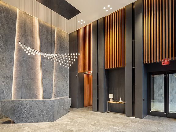 Luxury 1-bedroom with private balcony, business center, game room, pool, fitness center, children's playroom, and more! The space is designed for a spacious feel, with an open lobby and large windows that bring in natural light. Apartment features: Oversized rooms with floor-to-ceiling windows White oak hardwood floors Caesarstone quartz countertops High-end stainless steel kitchen Pre-wired phone/data lines and surround sound for your IPod/Music Dock Amenities include: Indoor pool and hot tub (illuminated by skylights) State-of-the-art fitness center Full-service spa with steam, sauna, and treatment rooms Landscaped rooftop terrace with BBQ station and panoramic views of the Manhattan skyline and McCarren Park 15,000-square-foot courtyard Club lounge, business center, library with fireplace Game room with golf simulator, wine cellar, screening room, bike room, pet spa, kids room Conveniently located on Bedford Avenue in North Williamsburg, close to the Bedford Avenue L subway (1 stop to Manhattan), with top restaurants, bars, shopping, and services just outside your door!