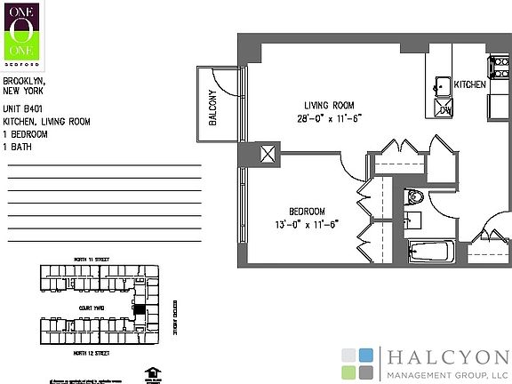 One Bedroom w/ Balcony, Courtyard view and lots of closet space We have designed the space to give you a sense of spaciousness inside and out, with open lobby and large windows throughout that invite natural light. Apartments features: * oversize rooms with floor-to-ceiling windows throughout, wide plank 4" white oak hardwood floors, Cesar-stone natural quartz counter tops, top-of-the-line stainless steel kitchen, pre-wired phone data lines and surround sound speakers hardwired to your personal IPod/Music Dock. Awesome amenities include; an indoor swimming pool and hot tub (lit by skylights), state-of-the-art fitness center, * full-service spa featuring steam, sauna, and treatment rooms, a fully-furnished landscaped roof terrace with barbecue station and panoramic views of the Manhattan skyline and McCarren Park, a 15,000-square-foot courtyard. * Club Lounge, Conference and Business Center, Library with fireplace, Game room with Golf Simulator, Wine Cellar, 29-seat Screening Room, Bike Room Pet Spa. Kids Room Conveniently located along Bedford Avenue in North Williamsburg and a quick walk from the Bedford Avenue L subway, and the Nassau Avenue G subway. Take advantage of some of the area's top restaurants, hip bars, shopping, grocers and cleaners right outside your front door