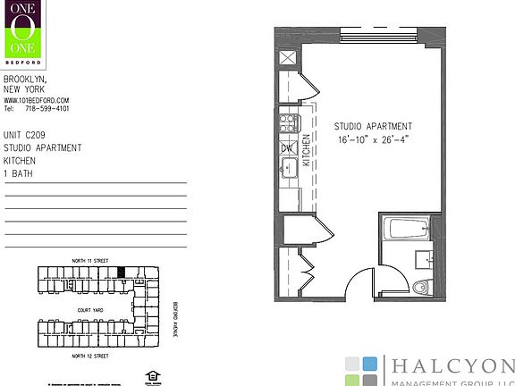 Residence C-209 is a Large Studio Apartment with Southern Exposures! This unit features floor-to-ceiling windows, wide plank 4" white oak hardwood floors, Caesarstone natural quartz countertops, top-of-the-line stainless steel appliances, and surround sound Bose speakers! 101 Bed ford is a full-service luxury rental building featuring unparalleled views of the Manhattan skyline and situated directly across the street from Mc Carren Park. Take a deep breath of relaxation the moment you walk in the front door as 101 Bed ford was designed to give residents a sense of spaciousness inside and out, with an open double height lobby and large windows inviting natural light. Conveniently located along Bed ford Avenue in North Williams burg. * Only 5 minute walk to the Bed ford Avenue L train & a 7 minute walk to the Nassau Avenue G train! * Take advantage of some of the area's top restaurants, hip bars, shopping, grocers and cleaners right outside your front door. Best of all, 101 Bed ford is across the street from Mc Car ren Park with 35 acres of bustling activity including the McCarren Park Pool and Play Center, 8 tennis courts, and facilities dedicated to soccer, baseball, basketball, bocce, football, kickball. 101 Bed ford has of the most exquisite and comprehensive amenity packages ever built! - Indoor Swimming Pool and Hot Tub (lit by skylights) - State-of-the-art Fitness Center - Full-service Spa featuring Steam, Sauna, and Treatment rooms - A Fully-Furnished Landscaped Roof Terrace with Barbecue Station: Panoramic Views of the Manhattan skyline & McCarren Park - A 15,000-square-foot Courtyard Garden - Club Lounge & Party Room - Conference and Business Center - Library with Fireplace - Game Room with Golf Simulator - Wine Tasting Room - 29-seat Screening Room - Music Recording & Photography Studios - Bike Room - Children's Playroom - Pet Spa - Garage Pet Friendly!!