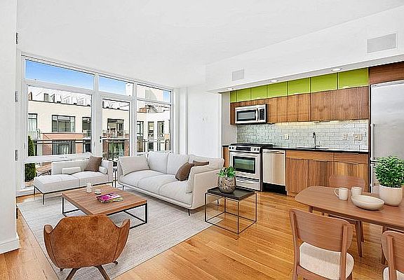 Studio unit with Balcony We have designed the space to give you a sense of spaciousness inside and out, with open lobby and large windows throughout that invite natural light. Apartments features: * oversize rooms with floor-to-ceiling windows throughout, wide plank 4" white oak hardwood floors, Cesar-stone natural quartz counter tops, top-of-the-line stainless steel kitchen, pre-wired phone data lines and surround sound speakers hardwired to your personal IPod/Music Dock. Awesome amenities include; an indoor swimming pool and hot tub (lit by skylights), state-of-the-art fitness center, * full-service spa featuring steam, sauna, and treatment rooms, a fully-furnished landscaped roof terrace with barbecue station and panoramic views of the Manhattan skyline and McCarren Park, a 15,000-square-foot courtyard. * Club Lounge, Conference and Business Center, Library with fireplace, Game room with Golf Simulator, Wine Cellar, 29-seat Screening Room, Bike Room Pet Spa. Kids Room Conveniently located along Bedford Avenue in North Williamsburg and a quick walk from the Bedford Avenue L subway, and the Nassau Avenue G subway. Take advantage of some of the area's top restaurants, hip bars, shopping, grocers and cleaners right outside your front door!! Net effective rent advertised