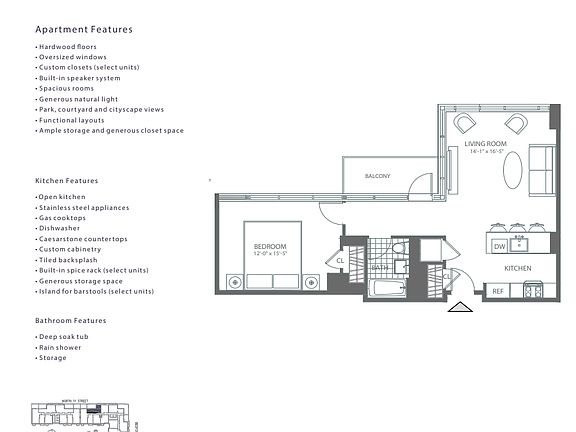 - Exterior features: , Bicycle storage, Broker Exclusive, Concierge, Courtyard, Fios Available, Garden, Guarantor Ok, Guarantors, Live In Super, No Fee, Nyc Evacuation 3, Parking, Pied A Terre, Recreation Facilities, Roofdeck