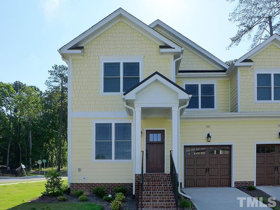 Open floor plan includes living area, dining, kitchen. Breakfast bar separates kitchen. Hardwoods in common area, with gas-log fireplace in living. Kitchen has granite counter tops, stainless appliances, recessed lighting, double door pantry closet, exit to deck. 1 bedroom, full bath on 1st. 3 bedrooms, loft, 2 baths up, including master with walk-in closet and master bathroom with dual sink vanity, shower. Carpet in all bedrooms. Washer & dryer. 1 car garage. Pet w/fee, prior approval. $15/filter fee.