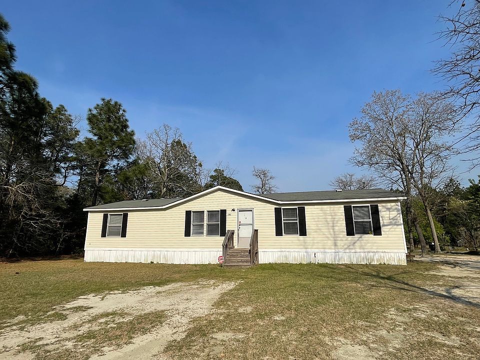 This spacious 3 bedroom 2 bath mobile home has hardwood floors throughout with carpet in the bedrooms. Stove, Dishwasher, Refrigerator included. Washer/Dryer hookups. Central heat and air. Large yard. Water is included in the rent(Well). Renter must pay electric. 1 year lease required. No smoking.
