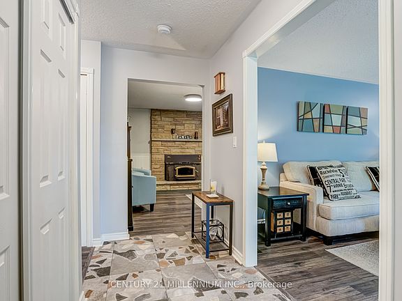 Experience the perfect blend of small-town charm and countryside tranquility with this exceptional property in a highly sought after area of Shelburne. Set on a beautifully landscaped .55-acre corner lot with mature trees, this home offers privacy, space, and a unique country in town feel just minutes from all amenities. A front yard sprinkler system keeps the lush landscaping vibrant and easy to maintain.A rare find, this property boasts two driveways, one ideal for trailers, RVs, or extra vehicles, plus a double car garage and parking for up to nine cars. Inside, you are welcomed by a tiled foyer with double closet leading to a formal living room with vinyl flooring and an oversized bay window. The cozy family room features a stone wood burning fireplace, wainscoting, and a walkout to the back deck. The kitchen is bright and inviting with a massive skylight, large windows, stainless steel fridge, and dishwasher.The spacious primary bedroom is a private retreat with a walkout to the deck and hot tub, a walk in closet, and a 5-piece semi ensuite. Two additional bedrooms each offer large windows and double closets. The main floor laundry room includes cabinets, a sink, and a side entrance with direct garage access, ideal for creating an in-law suite or basement apartment, plus a convenient 3-piece bathroom.The finished basement is an entertainers dream, styled with vintage wood paneling for a retro arcade vibe, complete with a bar, two bedrooms, a 3-piece bathroom, and a large utility room ready to be converted into a kitchen if desired.From summer evenings in your private backyard to hosting game nights downstairs, this property offers a lifestyle of space, flexibility, and fun in one of Shelburne's best locations.