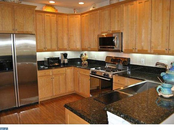 Beautiful, move-in ready Carriage Home in Blue Bell Country Club. Meticulous attention was given to the layout and selections of this tasteful end unit. Gorgeous hardwood floors throughout main floor and second floor hallway and main bedroom. Lovely Sun Room with tile floors and cathedral ceiling, opens to the mahogany custom deck. Great Kitchen with granite counters, stainless steel appliances and upgraded maple cabinets. Spacious main bedroom with cathedral ceiling and a luxurious main bathroom with skylight and whirlpool tub. Roomy finished basement with high ceilings, 2 walk-in closets and a storage area. Security system and irrigation system included. One of the finest carriage homes in Blue Bell or anywhere. Please come visit this exceptional home.