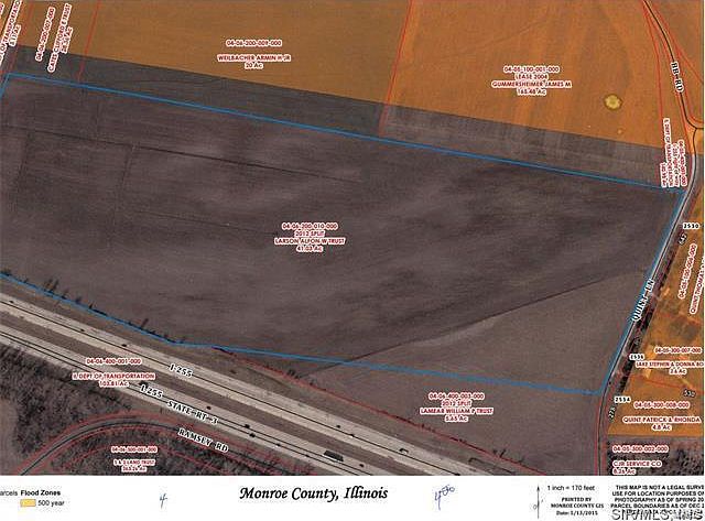 just off 255 near JB BRIDGE cross BIXBY RD property on the right 47000 per acre cloverleaf was planned at one time ILLINOIS tabled till future, farmer pays cash rent