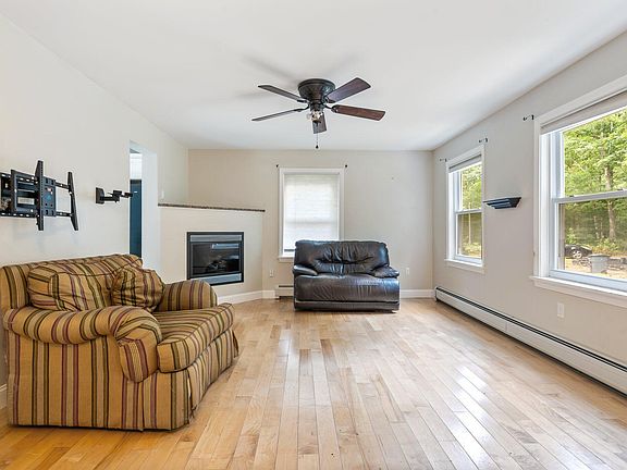 Situated on over 7 acres, this property is a private oasis. Featuring a 3 bedroom, cape-style home with detached 3 car garage, your updates will unlock the property's full potential and create instant equity. First floor primary bedroom suite features walk-in closet and ensuite bathroom. Open concept first floor features hardwood flooring, living room with gas fireplace, first floor laundry and kitchen with granite countertops, and slider to back deck. Deck is in need of repair/rebuilding and seller is willing to offer a concession credit toward all repairs including the deck. Must be written into offer. The raised beds in the backyard are waiting for your green thumb to put them to use. Daylight basement offers many possibilities for your future use. 3 car garage has an abundance of storage.