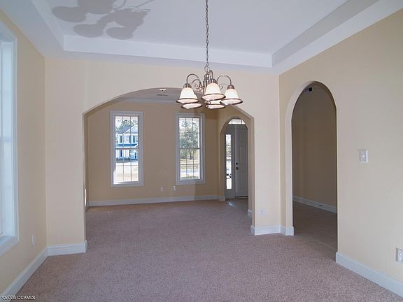 Gorgeous new construction, Cape Carteret, minutes to beaches, great schools. All the extras. Tray ceilings, lg master suite, custom cherry cabinets, ceramic tile, formal d/r and libr + great room and upst. bonus rm. Town boat ramp avail for small fee. D'sts master suite could be added, one bedrm up becomes office. Price $299,000 with this change. Sewer: 3 BR