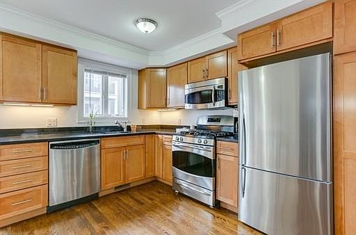Wonderful 2 bedroom/2 bath townhome with heated garage parking minutes from all the shops and restaurants of the bustling South Boston Seaport district! Enter to wide open living/dining room with hardwood floors and gas fireplace. Gleaming stainless steel kitchen with granite counters and custom cabinets. Step out from the dining area to your private deck. Upstairs is a spacious master with en suite granite bath plus second bedroom and full bath. Extra storage and heated laundry room off the garage, plus additional parking space behind the house. Easy living in the heart of the city! See also MLS#72408932 - Single family listing