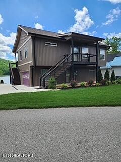 Just another day in paradise! This 2 bed, 3 bath home is on deep year-round water at glistening Norris Lake, with concrete steps to the water. Home offers plenty of space for family or friends to gather and enjoy time on the lake. There is a deck & patio with lakefront view, plus a floating dock. Home is just steps away from a full-service marina. Charming two-story home with professional landscaping and super easy level access from the road. (Garage could easily be converted to more bedroom space if needed. The total of 1920 SqFt includes 460 SqFt of garage space.)