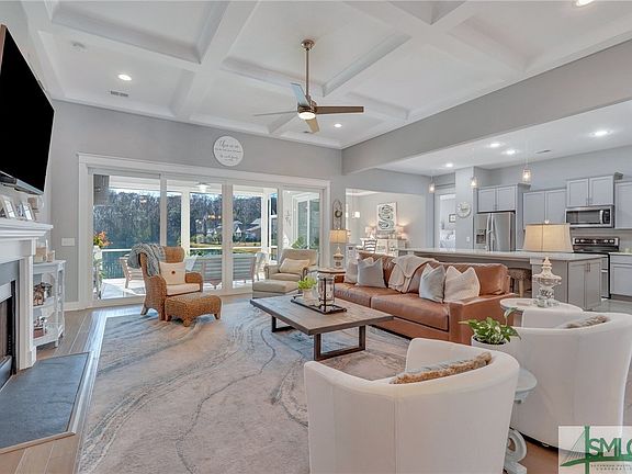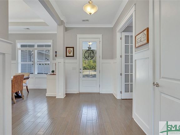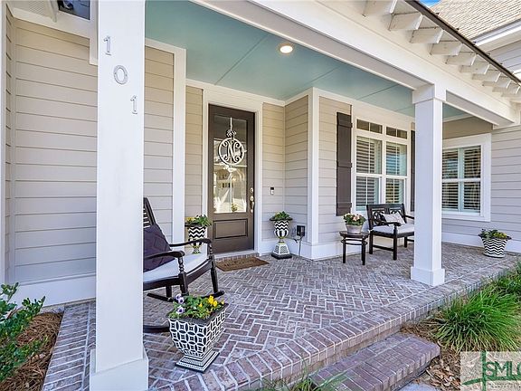 Located in the heart of Westbrook at Savannah Quarters, 101 Bramswell Rd. is pristine- it offers captivating water views, many upgrades and privacy. The kitchen features an expansive kitchen island with quartz countertops, soft close grey shaker style cabinets and an eat-in breakfast nook. It's open to the living room with 12Ft coffered ceiling, bookcase, wood burning fireplace with slate surround. The formal dining room has board and batten style trim with a tray ceiling. Dual sliding glass doors open to give an unobstructed view to the pond and bring together the outdoor living space. The screened porch has travertine tile floor, sun shades, and opens to the fenced in back yard with paver patio and fire pit. The owners suite has tray ceilings, dual custom closets, tile shower with frameless glass enclosure and a soaking tub. Hardwood floors throughout first floor, plantation shutters or pull down shades to maximize the view. 3 car garage with custom storage closets and rubber mats.