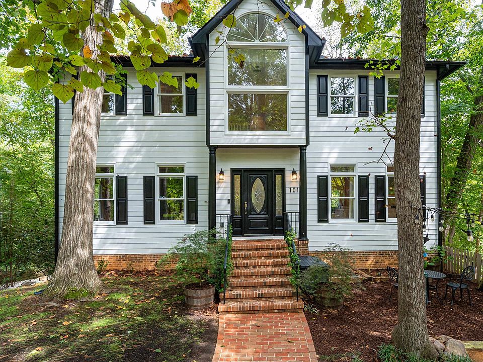 Built amid natural surroundings, this beautiful Southbridge home offers treehouse vibes and the feel of a calming mountain retreat—yet it's just 2 miles from UNC and Memorial Hospital. Nestled on a quiet cul-de-sac and immersed in mature hardwoods, it feels worlds away while still being close to everything Chapel Hill has to offer. The bright, airy main floor is lined with floor-to-ceiling windows that invite nature in and create shifting patterns of light throughout the day. A stylish kitchen flows to an expansive deck, perfect for entertaining or peaceful moments outdoors. Relax on the screened porch with serene vistas of Morgan Creek, or step onto the neighborhood stairway to access the Morgan Creek Greenway Trail System, connecting to Merritt's Pasture, Bolin Creek, and Fan Branch Trails. Here, neighbors still walk the tree-lined streets, adding to the sense of community and calm. Inside, unwind in the renovated owner's bath with a soaking tub, or enjoy the flexible lower level with kitchenette—ideal for an office, guests, or recreation. Convenient to Duke University and Research Triangle Park, and part of the sought-after Chapel Hill-Carrboro City Schools (Culbreth walk zone), this home is a rare blend of natural beauty, comfort, and location.