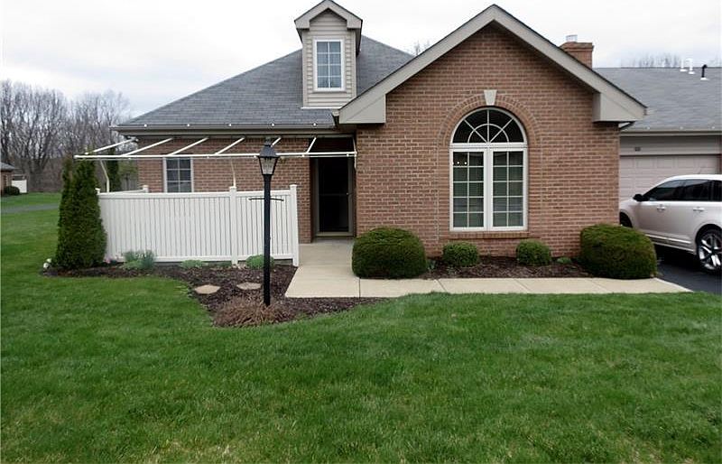 Simplify life in this pristine & tasteful 3 bedroom 3 full bath all brick condo! Lovely neutral decor and interesting architectural touches including trey, cathedral and gabled ceilings, crown molding, recessed lighting, ceramic tile floors, etc are found throughout the home. A main floor master bedroom includes an ensuite bath and walk in closet. The living room has vaulted ceilings with display ledges and a ceramic inset gas fireplace with wood mantel. The fully equipped kitchen has upgraded cabinets & appliances and includes a breakfast bar with seating. Open to the kitchen and living room is an intimate dining room with a trey ceiling, crown molding & recessed lighting. A large laundry room, full bath and an additional bedroom complete the main floor layout. Tucked away on the second floor is a large suite with a full bath and walk in closet. The large 2 stall garage has overhead storage. The energy efficient furnace includes a humidifier. Located on the cul de sac, this unit was the last home built and has easy access and parking. A wonderful community center with gathering room, kitchen, exercise room & heated pool is made available to the condo residents. Located in the Blackhawk School District, this community is 2 minutes from shopping & dining with easy access to I376 and the PA Turnpike. Your new low maintenance lifestyle begins here!