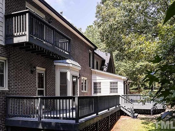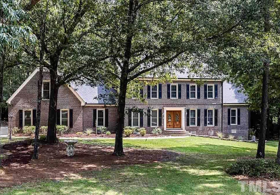 Handsome sprawling colonial on delightful wooded lot in highly desirable N. Raleigh. Home features: 1st floor guest suite w/updated bath & walk-in closet, 1st floor laundry, kitchen w/gorgeous granite countertops, cozy family room w/stone fireplace, mostly hardwood floors & vinyl windows. 2nd floor boasts a restful retreat in master bedroom w/fireplace & balcony, huge bonus above side entry garage & 2nd floor laundry. Unpermitted space: 3rd floor bonus room w/bath & 1st floor sun-room. Showings begin 8/13