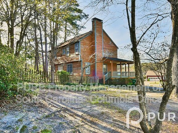 Lovely 3 bedroom, 2.5 bath home in the established Briarcliffe Estates neighborhood in Elgin near NE Columbia. This home sits on a large corner lot w/ mature trees and landscaping, side-entry driveway, a wraparound covered porch, and fully-fenced backyard w/ workshop/shed. Formal living room off the foyer. The kitchen features a large eat-in dining area with picture window, built-ins and workspace, as well as included smooth-top stove, dishwasher, and refrigerator. Family room boasts a wood-burning stone fireplace, exposed wood beams, built-in shelving, and a wet bar. Full-size laundry room off family room and half bath off foyer. All bedrooms upstairs. Huge primary bedroom suite boasts two closets, a separate sitting/dressing room, and full bathroom w/ updated tiled shower. Two additional bedrooms and a 2nd full bath w/ tub/shower off the hall. Laminate hardwood flooring downstairs; tile flooring in all bathrooms. Convenient to I-20 & I-77, NE Columbia amenities, Village at Sandhills shopping, and Fort Jackson. Richland 2 schools. All PURE Property Management residents are enrolled in the Resident Benefits Package (RBP) which includes renters insurance, HVAC air filter delivery (for applicable properties), credit building to help boost your credit score with timely rent payments, $1M Identity Protection, move-in concierge service making utility connection and home service setup a breeze during your move-in, our best-in-class resident rewards program, and much more! More details upon application. Amenities: fenced backyard, air conditioning, dining area, covered proch