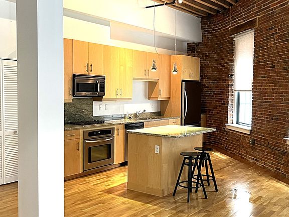 NO FEE Heat & Hot Water included. Welcome to The Broadluxe, a classic 1880's Brownstone located in Boston's coolest neighborhood. This sunny studio/one bedroom has a wide-open floor plan with a partition wall separating the bedroom area, and is on the edge of Faneuil Hall, the Financial District and the waterfront, and is a short stroll to the bustling Seaport District and the North End. This beautifully restored professionally managed building features an inviting lobby with concierge station & an elevator. Unit 2F greets you with an entry way leading into this well proportioned loft. This generously sized corner unit boasts 11' high beamed ceilings, 6 large windows, hardwood floors, and exposed brick throughout. The main area comfortably accommodates living, dining and a study space, plus a large sleeping wing with a generous closet. The kitchen is equipped with custom maple cabinets, stainless appliances and granite counters. There is a marble bath, an in-unit private laundry and extra storage complete this unit, as well as a bike rack in the basement. Landlord pays heat, hot water and air conditioning. Tenant responsible for electricity. No smoking in unit or building. Apartment comes with 1 storage unit and is partially furnished with 2 armoires, desk. Washer/Dryer in unit.
