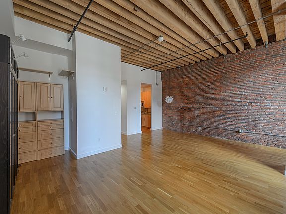Luxury Loft at the Broadluxe. This well planned open space loft has a gallery style kitchen with stainless steel appliances, granite counter tops, in-unit laundry, 13" ceilings with original, exposed wooden beams. Very large windows, original granite blocks and exposed red brick give this unit the old Bostonian charm with modern luxury finishes. There is a large storage cage in the basement. The building has day time concierge service. Location could not be better, just on the edge of the Financial District and the Waterfront, where the action happens. Garage parking with reverse commute options available.1st, security, one month fee
