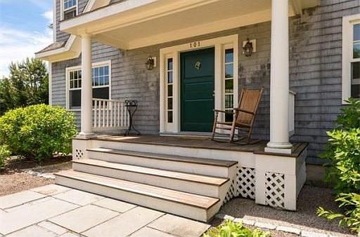 Wonderful River's Edge Nantucket Colonial tucked in on a private lot. Inviting, open floor plan with wood and tile floors throughout. Desirable, first floor master suite, large, well appointed kitchen leading to three season sun room. Open living room with fireplace and quality built-ins and cabinetry. Upstairs offers three bedrooms, two full bathrooms with a lounge/loft space as well! Finished rec room in the basement, and three car detached garage with unfinished build-able room above!