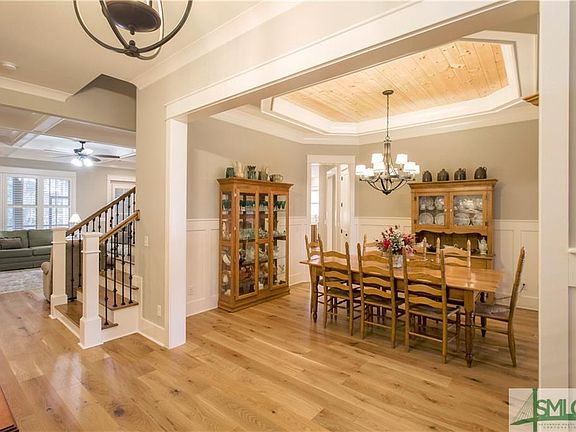 Like new construction only better! Located in the gated Westbrook golf community of Savannah Quarters, this beautiful, Hardiplank home w/ 3 car garage is situated on a 1/3 acre private wooded homesite.  There is a wooded nature preserve behind this home not to be built on.  If you're looking for a gorgeous home with the master BR plus a 2nd bedroom (ensuite) on the main floor, this is it!  Large great room with fireplace and built-ins opens to the WHITE gourmet kitchen featuring all JennAir appliances inc. 6 burner gas cooktop, pot filler, island and 3, yes 3 pantries. Upstairs are three more bedrooms plus bonus room - all barely lived in. Gorgeous white oak floors, unique ceiling treatments, plantation shutters thru-out entire home, closet built-ins, surround sound, shiplap accents, spray foam insulation, 16 seer hi-efficiency heat pumps, so much more! The screened porch is very spacious and features a gas fireplace and TV.  Located on a very quiet street off the main road. Must see!