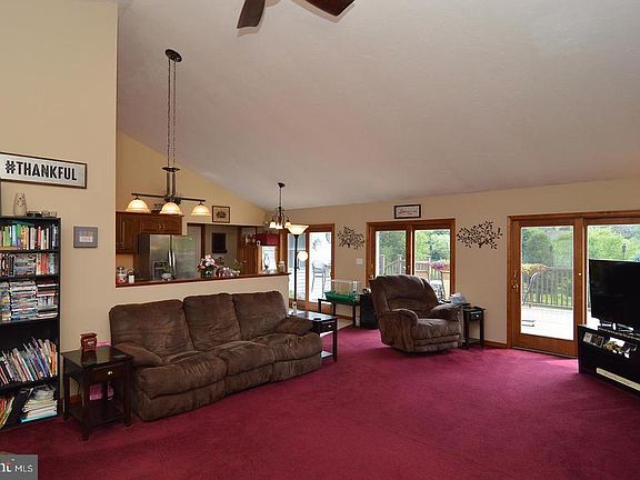 Absolutely beautifully landscaped 2.5+ acre lot greets you to this 4+ bedroom contemporary rancher and a fantastic "trex" deck with retractable awning highlight the rear of the home. Home functions as one floor living with a bonus walk out lower level to be used as "in-law" space or Media room complete with Kitchenette and microwave to prepare your movie day popcorn. Fourth bedroom in lower level and 2 FULL baths and loads of storage and addl exercise room or possible 5th bedroom if needed. Loads of beautifully finished space that allows flexibility in use.