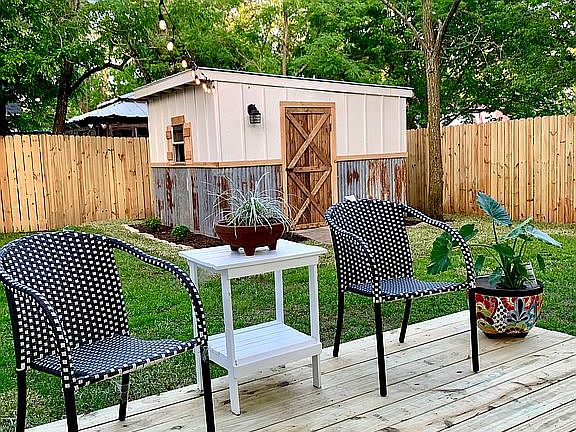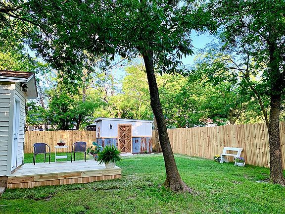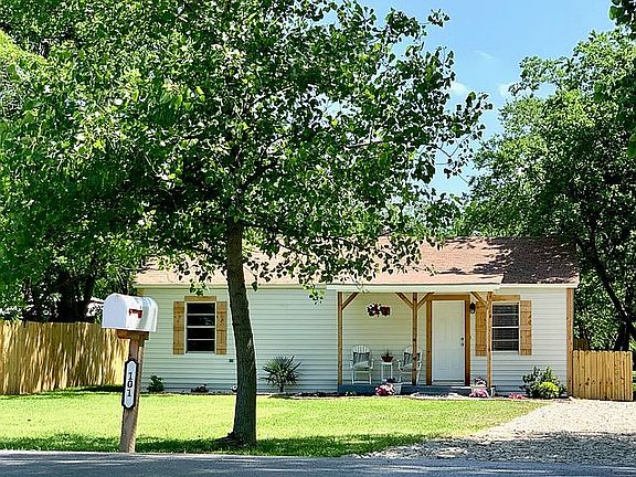 Cute and cozy. New vinyl plank flooring throughout. Gas fireplace. New central heat/air. New water heater. Granite countertop in bathroom. New tub, shower, toilet. New kitchen and wet bar countertop with subway tile backsplash. Equipped with new stainless side-by-side Kenmore refrigerator, stainless stove and built-in microwave, and GE front-load washer and dryer. Large pantry. Barn door closet doors in both bedrooms. New privacy fence and 14x14 workshop.