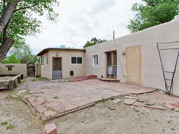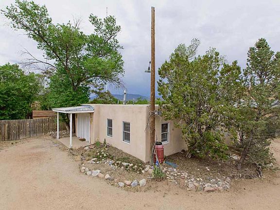Adobe and Frame house with attached studio space. The house features vigas, hardwood floors and corner Kiva. House could use updating, but is livable as-is. Good investment potential. Could be sold with Adjoining lot 8, MLS #201602978. See survey doc in Documents
