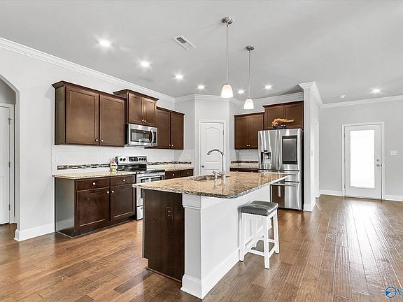 - RoomKitchenFeatures: Granite Counters, Kitchen Island, Pantry, Recessed Lighting, Eat-in Kitchen, Wood Floor, Smooth Ceiling, Crown Molding