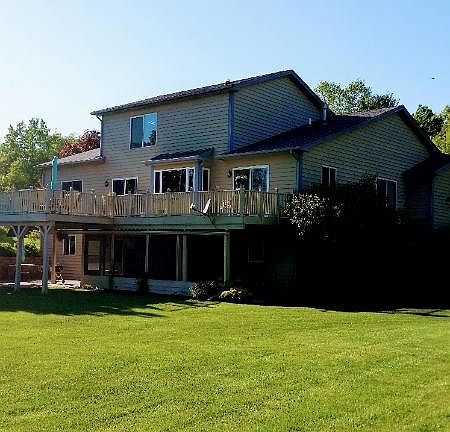 Property Id: 137234 Imagine waking up in this lovely lakeside setting. House redecorated and updated with new appliances in the gorgeous kitchen. The living room, dining area, 2 bedrooms and full bath with jacuzzi are on main floor. The 2nd floor has master bedroom with large en suite bathroom and large walking closet. There is also loft overlooking living room that is a great place for a work at home office space. Off the loft there is also a storage area above garage. The fully finished walkout basement have a family room with gas fireplace and a 4th bedroom with Jack and jill bathroom with shower. The large storage utility room is huge. Screened in room, brick patio and full deck make for a great outdoor entertainment area. 3 car garage.