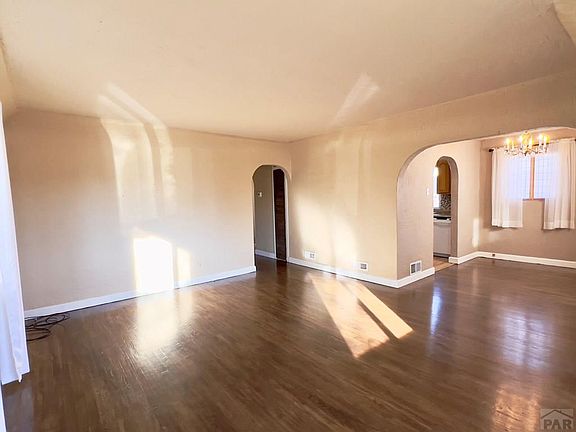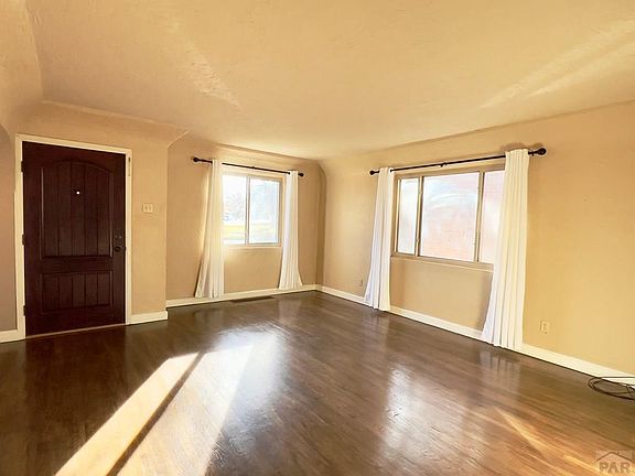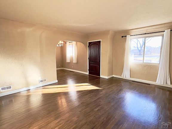 Discover timeless charm and modern convenience in this beautifully maintained 2-bedroom, 1-bath home located in the highly desirable Aberdeen neighborhood. Pride of ownership shines throughout this delightful property, nestled just steps away from City Park, the City Park Golf Course, Pueblo's scenic river trail system, and Pueblo Community College. Plus, you'll love the serene wedge park maintained by the city right across the street. As you step inside, you'll be greeted by stunning natural hardwood floors that flow seamlessly through the home. The layout is thoughtfully designed, offering an effortless transition from the spacious living room to the dining area and through to the kitchen, laundry room, and hallway. Both the primary bedroom and second bedroom feature cedar-lined closets, keeping your wardrobe fresh and ready for any occasion. Outside, the fully fenced, mature yard provides a peaceful retreat or the perfect space for entertaining, complete with a stone patio and lush grassy area. The detached 2-car garage, accessible via the alley, is home to solar panels that keep electricity costs nearly nonexistent—even during summer months with central air conditioning. This home is spacious yet cozy, filled with warmth and character, and move-in ready. Don't miss your chance to make it yours and Get Your Golden Key!