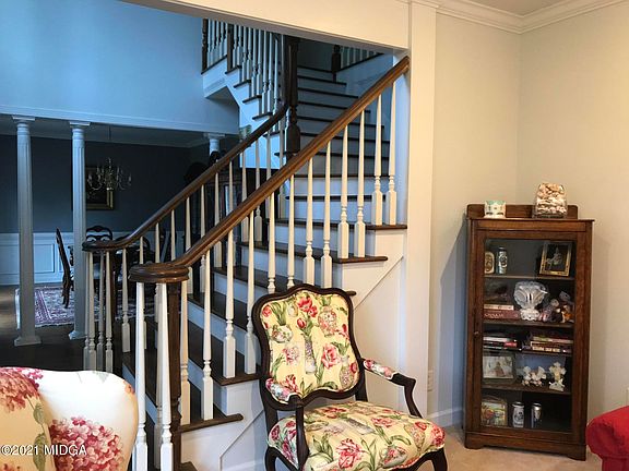Brick home on 1.77 acres in Monroe County. Bring the family home! . 4 bedrooms, open kitchen, breakfast, living room and dining room. Lots of fresh paint, hardwood flooring down, nice moldings. Large deck, unfinished basement with drive around with garage door. Landscaping was redone last May. There are tea olives, oakleaf hydrangeas, daylilies, daisies, climbing roses and gardenias in the flower beds.