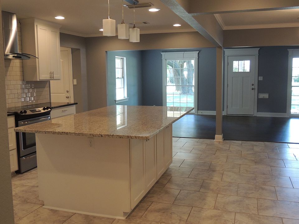 - Kitchen Features Appliances: Exhaust Hood, Pantry, Stone, Hard Surface Counter