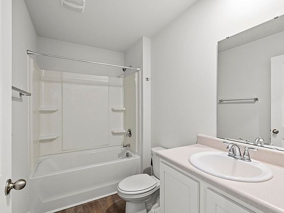 The thoughtfully designed floor plan places the primary suite separate from the other bedrooms, offering privacy and comfort. The suite includes a 5-foot walk-in shower, double vanity, large walk-in closet, and a separate linen closet for extra storage.