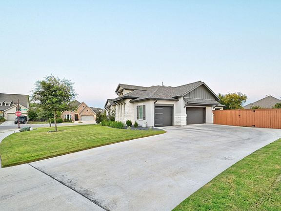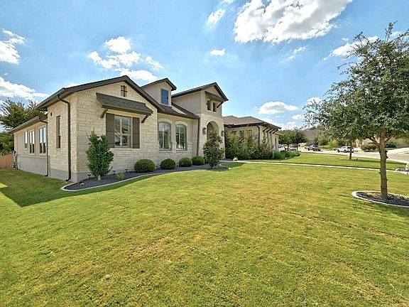 Welcome to Paradise! With over $250k in recent updates, this stunning 1-story home offers 4-bedrooms, 3.5-baths, an office, as well as an additional flex room which would be great as another office and/or playroom for the kids. Built in 2020, this Perry built home boasts 3,082 sq. ft. of thoughtfully designed living space on a desirable oversized, corner lot (0.35 ac). 3-car garage with epoxy flooring. Open kitchen and living area that is filled with natural light, large windows, 13-ft ceilings, and tasteful, wood like ceramic tile flooring. The kitchen features quartz countertops, Bosch appliances, a freshly painted island, and updated fixtures. A gas fireplace anchors the living room and helps add warmth and elegance. The spacious primary bedroom with bay windows and hardwood floors is a relaxing retreat with a large en-suite bathroom and walk-in closet. Outdoor living shines with a resort-style pool, hot tub, and a spacious covered patio that opens to the backyard. Complete with retractable privacy shades, this inviting space can be enjoyed year-round in comfort and style. Additional side yard space to boot! Fresh landscaping enhances the curb appeal, while the fenced backyard provides privacy and space to enjoy year-round. Rancho Sienna subdivision has over 100 acres of open spaces, trails, several sport courts, dog park, and fishing ponds. Feeds into highly acclaimed Liberty Hill ISD. Some of the other numerous updates completed by the current owners include hardwood floors in all closets and bedrooms, solar panels, Tesla power wall, plantation shutters along with electric blinds on all windows, murphy bed in guest suite, tankless water heater, whole home dehumidifier and air filter. Blending modern upgrades, functional design, and exceptional outdoor amenities, this home is perfect for both relaxation and entertaining.