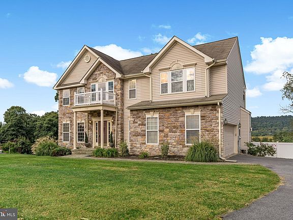 This 5 bedroom, 3.5 bath home with over 3,600 sq ft is sitting on over 3/4 acre with gorgeous mountain views. As you enter you are greeted with a grand 2-story foyer with a 2-story shelf for your seasonal decorations to be showcased through the window. The foyer, formal dining room, half bath and formal living room feature hardwood floors. The formal dining room and living room also features 9 ft ceilings, bump-outs, bay windows and crown molding. The kitchen is equipped with plenty of cabinets and countertop space, stainless steel appliances, a large kitchen island, and a peninsula that offers seating in the morning room bump-out with a large deck to expand your entertaining area while enjoying the mountain views. The living room sits off the kitchen and features LVP floors and a fireplace. 9-foot ceilings throughout, with even higher ceilings in many areas. Upstairs you will find a large owner's bedroom with a cathedral ceiling, large walk-in closet. The owner's bathroom features a soaking tub, walk in shower, double vanity and a toilet room. Down the hall you will find three large guest rooms with large closets, one is a large walk-in closet fit for a princess! The basement is finished with a recreation room, full bathroom, 5th bedroom and an unfinished storage room. The 5th bedroom features 2 windows, a generous sized closet and sits off the basement recreation room . The basement is a walk out which leads you to your stone patio and back yard, which is fenced with a white vinyl privacy fence, no homes are built behind you...Did I mention the mountain views?! There is a shed for your mower and lawn tools as well. The laundry is on the main floor with newer washer and dryer that stay with the home. The oversized garage is a side load and has high ceilings, perfect for hanging storage racks and plenty of room for work benches. This spacious home has been well cared for by its owner's since it was built. Seller has a Sear's Whole Home transferable home warranty! Back roof was replaced 10 years ago.
