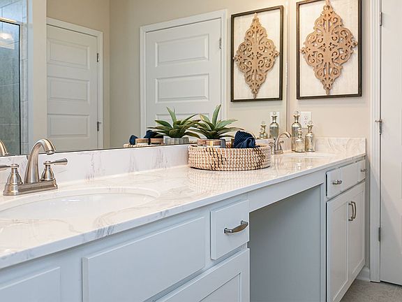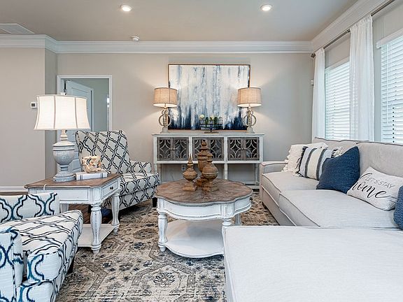 Single-level living at its finest can be found in the Crawford, featuring a large kitchen that would pamper any chef with loads of counter and cabinet space.. A mud room area, separate laundry room and large pantry help keep the kitchen clean and clutter-free. An open family room connects to the kitchen and the backyard for effortless entertaining. The owner's suite also enjoys views of the backyard and separation from the two other bedrooms.